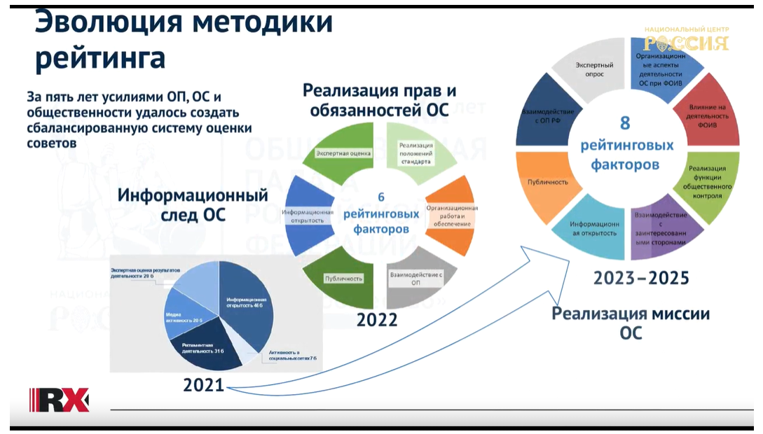 - 2023 год: Разработана современная структура рейтинга, основанная на ключевых видах деятельности общественных советов.