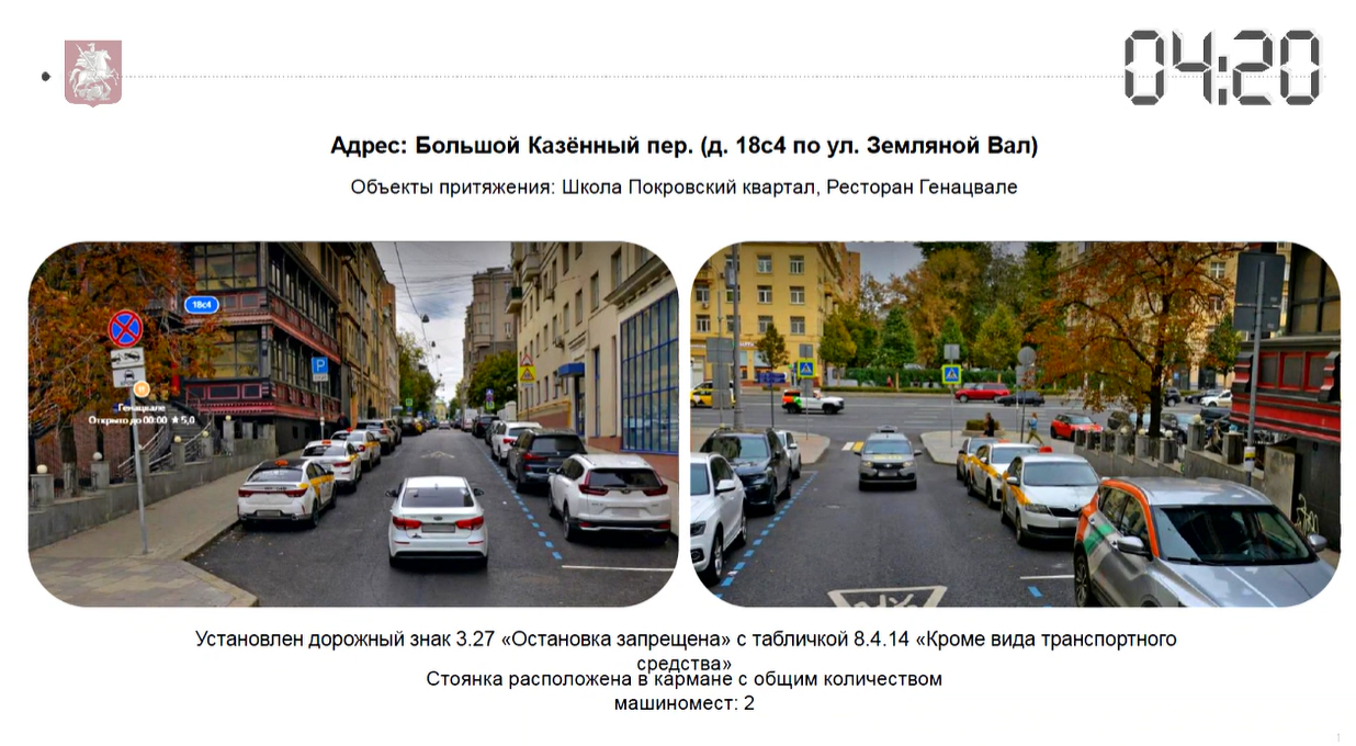 Поэтому сегодня мы выносим на обсуждение инициативу, адресованную Департаменту транспорта и профильной комиссии Мосгордумы. Мы предлагаем рассмотреть возможность пересмотра статуса этих зон в пользу знака 3.28 — «Остановка запрещена». Это разрешило бы любому автомобилю осуществлять в этих карманах кратковременную остановку (до 5 минут) для безопасной посадки и высадки пассажиров.